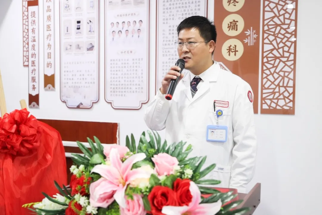 随后刘院长特别邀请了杨建辉教授、医疗周泉院长、疼痛科吕新朋主任、康复理疗科孙三强主任以及住院部李英主任,共同为疼痛科揭牌。这一刻不仅象征着疼痛科的正式成立,更凝聚了医院领导和全体医护人员的共同努力与殷切期望,疼痛科的成立,不仅是医院发展的新起点,更是为广大患者带来福音的希望。