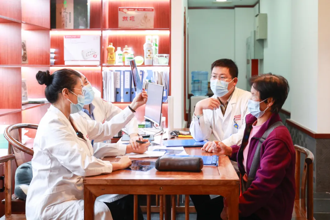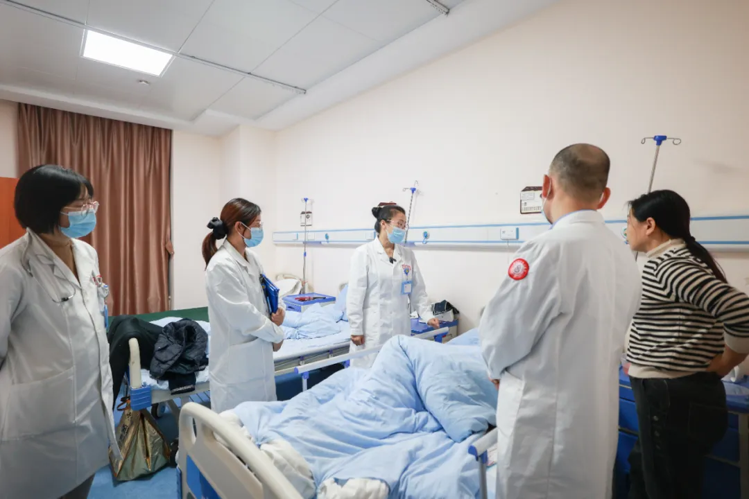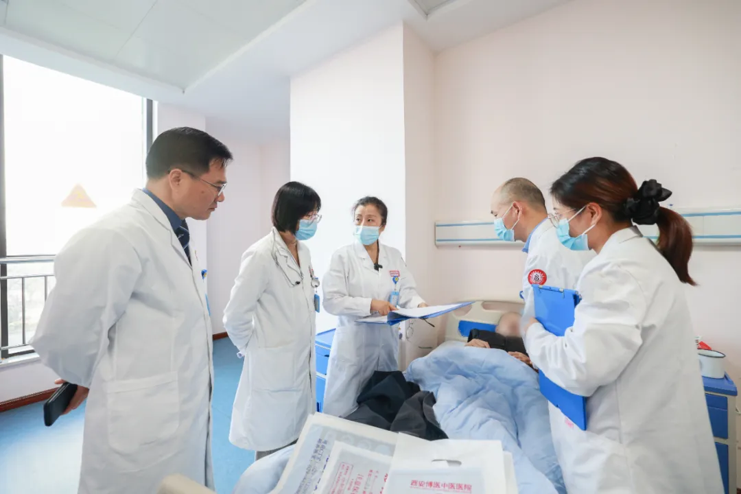 会诊结束后,任教授在刘院长、孙主任、吕主任、李主任的陪同下,前往3楼住院部查房,他们逐一探访了住院患者,详细了解每位患者的病情和治疗进展。任教授耐心听取了主管医生的汇报,并仔细查看了病历资料和检查结果。她还与患者进行了亲切交流,鼓励他们保持积极心态,配合治疗。